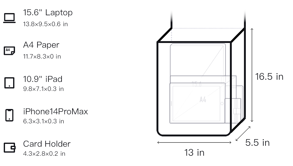 - Size:L*W*H: 13.0*5.5*16.5 in