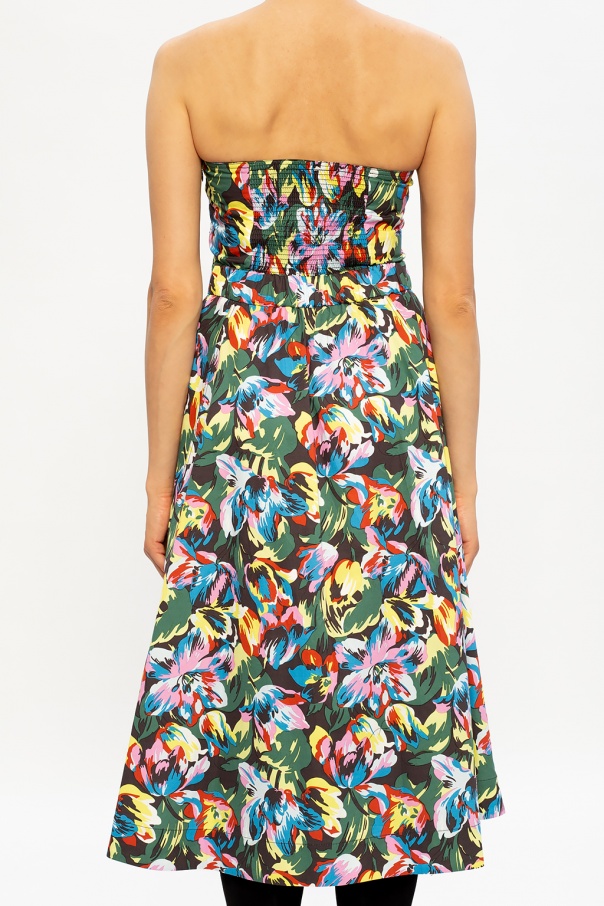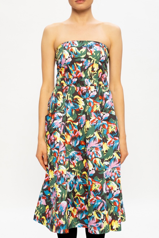 Colorful flared strapless dress form Kenzo x Vans. Fastened on the side with a concealed zip. Decorated with a floral print. Two slip pockets.