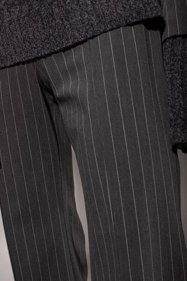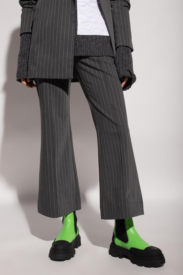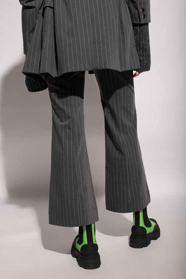 Grey trousers from Ganni. Embellished with a white pattern with stripes, this pair features a hidden zip closure on the side and flared legs.