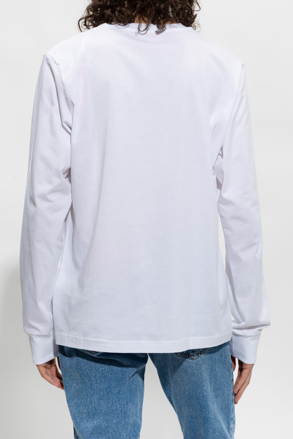 White ‘T-JUST-LS-D’ T-shirt from Diesel. Made of cotton, this long sleeve design features a logo patch and ribbed crew neck.