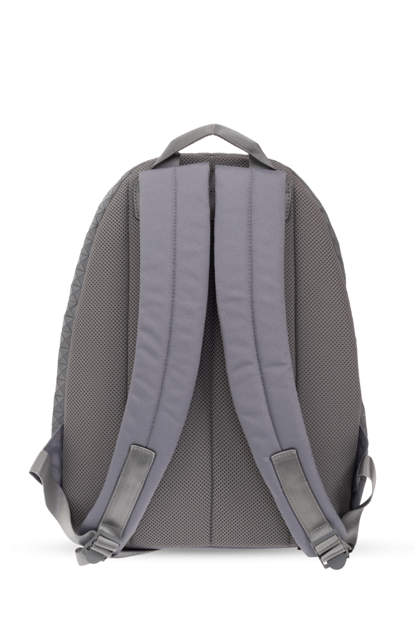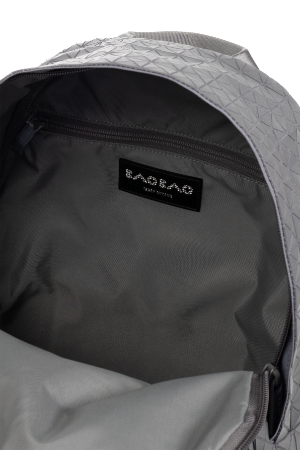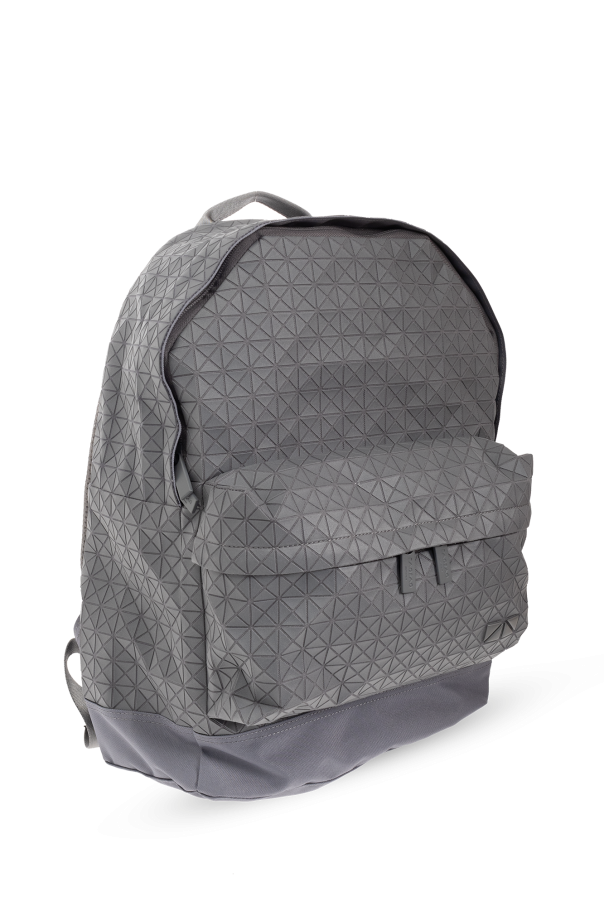 Grey backpack from Bao Bao Issey Miyake. Made of cotton and other materials, this design fastens via a zip and showcases a replicated geometrical pattern. It is complete with a half-round handle, one zip pocket on the front, adjustable shoulder straps, grey metal hardware and one internal compartment with a zip pocket.