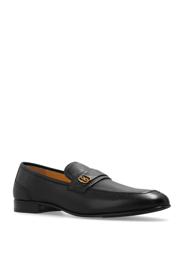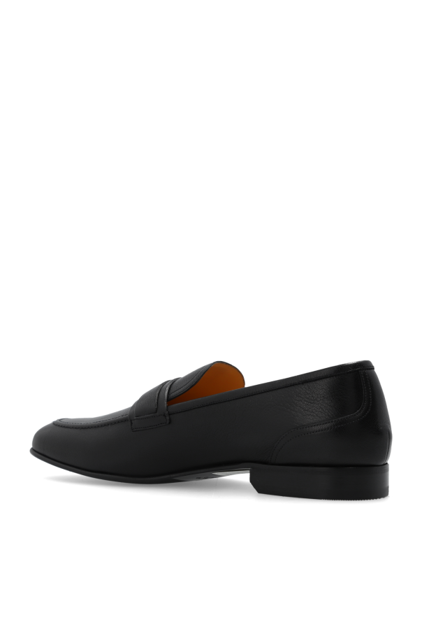 Black ‘Sadei’ loafers from Bally. Made from goat leather, this model sits on a black leather sole with a rubber trim an features a strap with gold-tone logo hardware on the front.