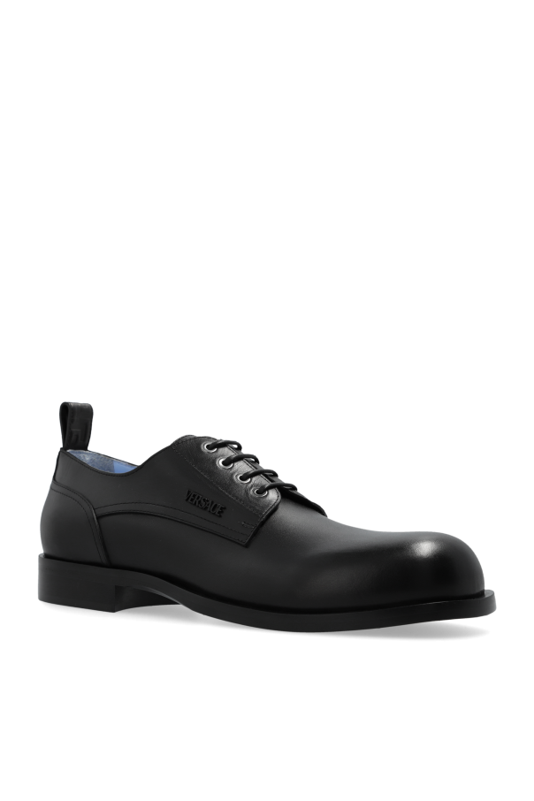 Introducing a paragon of sophistication and timeless design, our Versace Men\'s Black Leather Shoes epitomize the quintessence of formal attire. Crafted with meticulous attention to detail, these shoes are constructed from premium quality leather, promising both durability and a polished aesthetic. The classic black hue and sleek, lace-up design render these shoes versatile for an array of formal occasions, from business meetings to evening galas. The shoes feature an elegantly round toe and a subtle, flat heel, aligning with the traditional expectations of formal footwear. The interior is lined with leather in a contrasting color, enhancing the comfort without compromising style. While the outer layer boasts a smooth texture that exudes luxury, the rubber sole ensures practicality with excellent traction. Although discreet, the designer\'s logo is tastefully placed, signaling the authenticity and exclusivity of the Versace brand. Styled effortlessly with formal trousers and a blazer, these shoes are designed to complement a refined and distinguished ensemble. Their construction and design not only speak volumes about the wearer\'s taste but also about their appreciation for craftsmanship and luxury. Why Purchase This Product? Exceptional Quality: High-grade leather construction ensures longevity and enduring style. Timeless Design: Classic black, lace-up design offers versatility across formal events. Comfort Meets Style: Leather-lined interior provides comfort without sacrificing elegance. Signature Versace Elegance: Subtle branding emphasizes luxury and designer appeal.