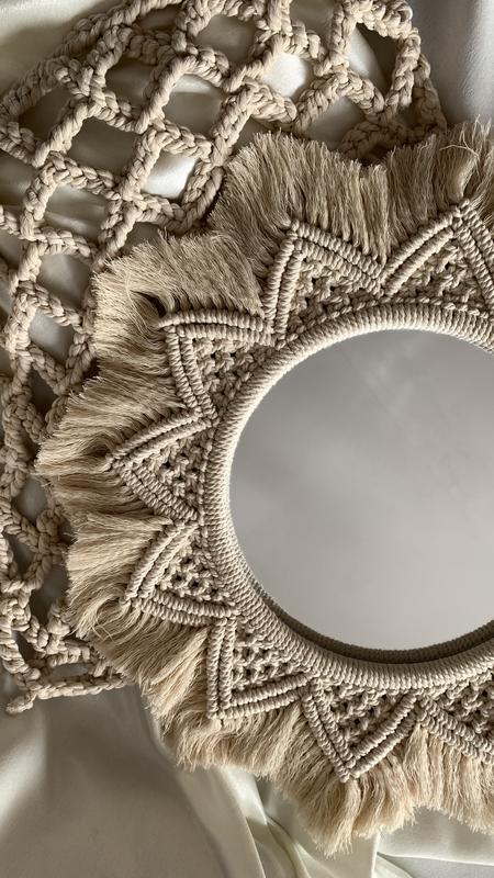 Дзеркало настінне макраме кругле, мандала, плетений декор, ручна, хендмейд