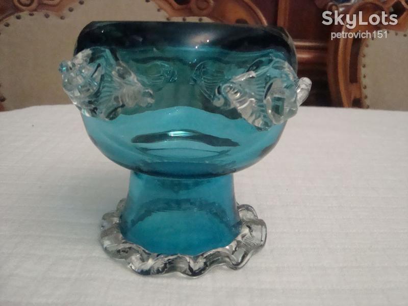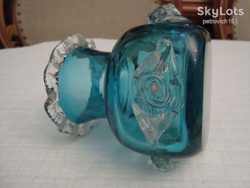 ОРИГИНАЛЬНАЯ КРАСИВАЯ АНТИКВАРНАЯ ВАЗА ЦВЕТНОЕ СТЕКЛО ( БИРЮЗА ) СССР 1930 ГОДОВ БЕЗ СКОЛОВ ТРЕЩИН И РЕСТАВРАЦИЙ ВЫСОТА 12,5 СМ., ДИАМЕТР ВЕРХА 9,5 СМ.