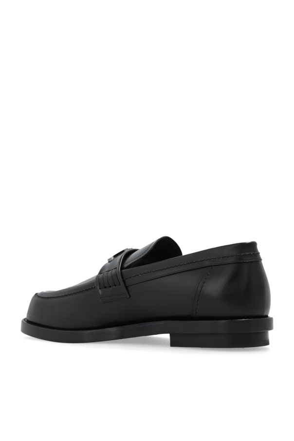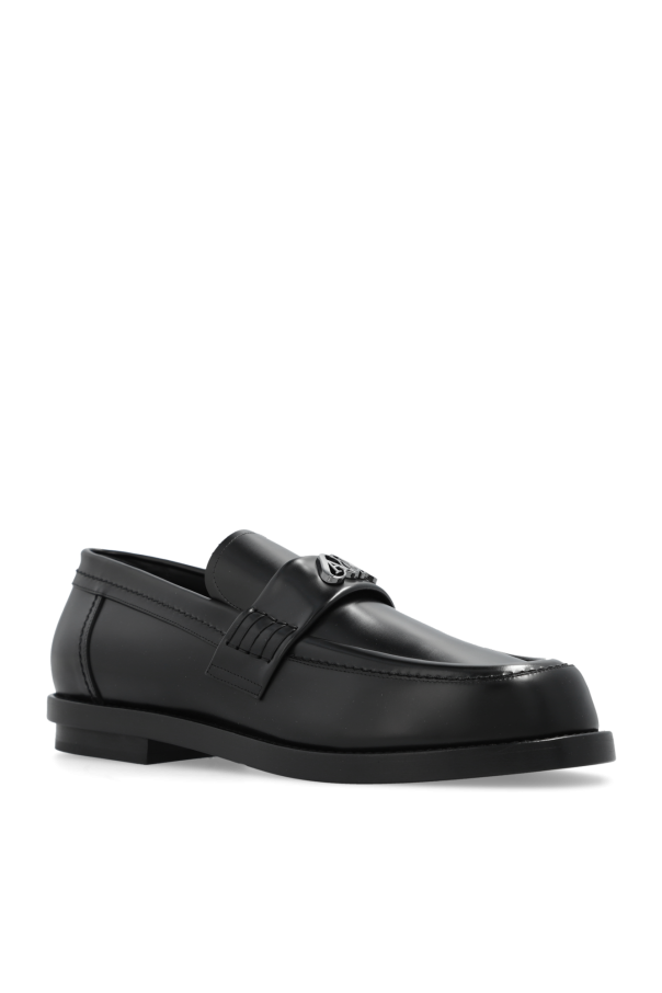 Black loafers from Alexander McQueen. Made of leather, this model sits on a black leather sole and features a frontal strap with Seal hardware.