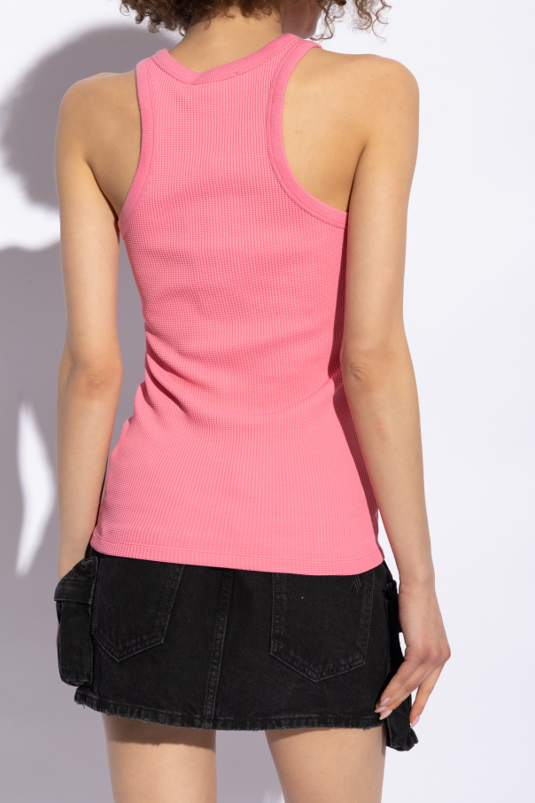 Introducing the epitome of refined taste and subtle elegance, the \"Top with Logo\" by The Attico. Crafted from the finest 100% Polyamide, this exquisite piece presents a seamless blend of casual sophistication and timeless style. Bathed in a captivating pink hue, it exudes a soft yet bold statement for those who appreciate the luxury of simplicity. The top features a classic round neckline and a sleeveless design, ensuring a chic and comfortable fit. The front is adorned with vertical, delicate stripes that add a touch of texture, enhancing the garment\'s overall allure. The attention to detail is further showcased by the matching button closure, each button detailed with a traditional four-hole design, adding a classic touch to this modern silhouette. Discreetly positioned above the button placket, the designer\'s logo provides an understated nod to exclusive craftsmanship. Designed to gracefully contour the body, this top reaches the hips, offering a flattering fit that accentuates the silhouette. The strategic placement of the buttons and the subtle exposure of the logo on the chest elevate this piece from a simple garment to a statement of high fashion. Why Purchase This Product? Made from premium 100% Polyamide for lasting quality and comfort. Elegant pink color and discreet designer logo for an exclusive appeal. Subtle texture and classic button details underscore meticulous attention to design. Flattering fit that accentuates the silhouette, suitable for various occasions.