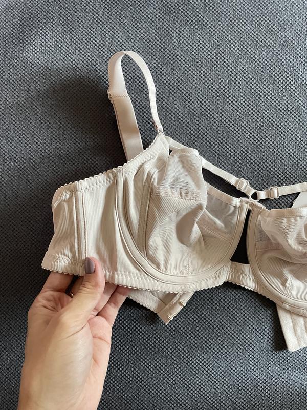 Бретелі широкі, портупеї не знімаються, спинка широка, добре закриває під руками, широкий боковий захват, застібка крючки в 3 ряди.
