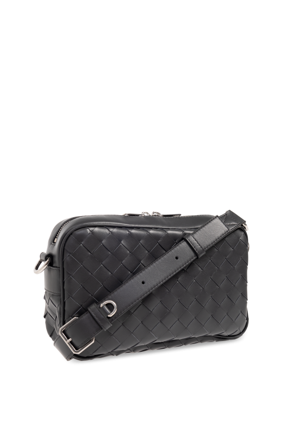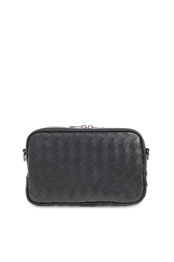 Grey shoulder bag from Bottega Veneta. Made of calf leather and decorated with the brand\'s signature ‘Intrecciato’ weave, this design features a two-way zip fastening, a detachable and adjustable shoulder strap, silver-tone metal hardware and one internal compartment with one zip pocket and one slip pocket.