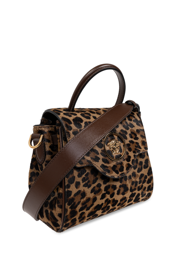Introducing the epitome of luxury and sophistication – the Versace Shoulder Bag. This exquisite accessory from the renowned fashion house Versace combines timeless elegance with a touch of wild allure. The bag boasts a classic, rectangular shape with slightly rounded corners, providing a structured and refined appearance. Crafted from premium lambskin leather with an animal print pattern, it exudes an unmistakable air of opulence and boldness. The surface of the bag is adorned with a striking leopard print that captures attention and underscores its exclusivity. The front features a gold emblem with the iconic Medusa head motif, a hallmark of Versace. Complementing the design is a sleek, brown leather shoulder strap, adding to its overall elegance. For ease of use and security, the bag is equipped with a magnetic flap closure. The interior, finished in a rich brown lining, offers multiple compartments and a slip pocket to keep your essentials organized. The meticulous craftsmanship inside speaks to the high quality of this product. This versatile bag also includes an adjustable strap, allowing for both shoulder and hand carry options. The gold accents, such as the emblem and buckles, further enhance its luxurious character. Why Choose This Product? Exclusive animal print pattern for a distinctive look. Premium lambskin leather ensuring durability and luxury. Iconic Versace Medusa emblem adding a touch of opulence. Magnetic flap closure for convenience and security. Multiple interior compartments for optimal organization. Adjustable strap for versatile carrying options.