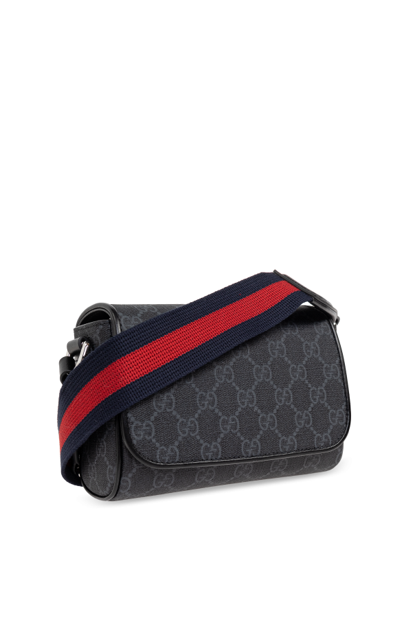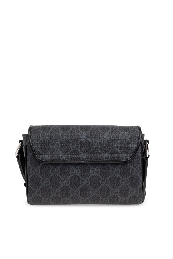 Introducing the Gucci \'GG Super Mini\' shoulder bag, a quintessential accessory for those who appreciate the fine line between modern luxury and timeless design. Crafted with an exquisite blend of calfskin leather and \'GG Supreme\' canvas, this piece stands out not only for its durability but also for its distinctive textural quality. The bag is adorned with a mesmerizing pattern of repetitive designer logos, set against a classic black backdrop, exuding an air of sophistication and brand prestige. The bag features a flap closure with a secure magnetic snap, ensuring your essentials are kept safe. The interior reveals a thoughtfully designed space, including a compartment with two card slots, enhancing its functionality and organization. The adjustable shoulder strap, boasting iconic red and navy colors, hints at a retro inspiration or brand-specific color scheme, adding an element of vibrancy to the overall design. Attention to detail is evident in the precise stitching, high-quality materials, and the luxurious finish, making this bag a desirable piece for those who covet exclusive designer accessories. Why Purchase This Product? Elegant design with repetitive logo pattern for a distinctive luxury appeal. Constructed from high-quality calfskin leather and \'GG Supreme\' canvas for durability and a premium feel. Functional interior with card slots for organized storage. Adjustable shoulder strap with brand-specific colors, adding a touch of retro elegance. Secured with a magnetic snap closure for easy access while maintaining the safety of your belongings.