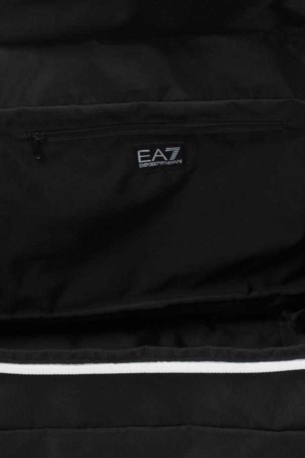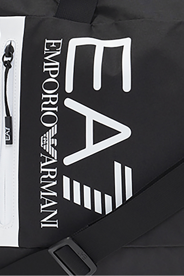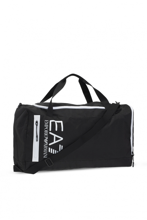 Black and white duffel bag from EA7 Emporio Armani. Printed with the brand's logo, this design features a two-way zip fastening, two zipped pockets, two half-round handles, a detachable and adjustable shoulder strap and one internal compartment with a zip pocket.