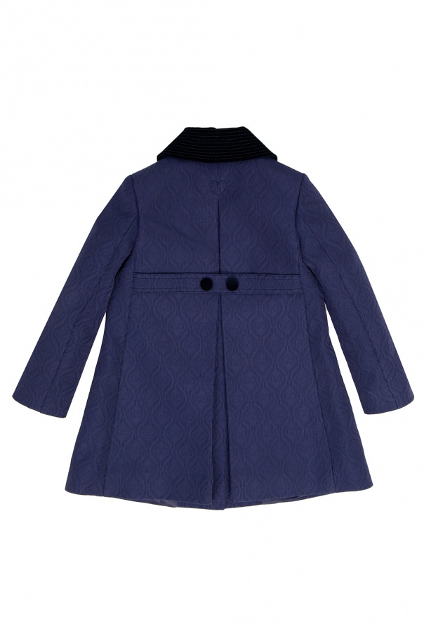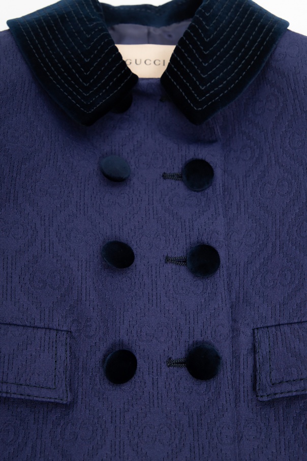 Navy blue coat from Gucci Kids. Boasting a double-breasted silhouette, this style is complete with button closures, two flapped pockets and a decorative wedged back vent.