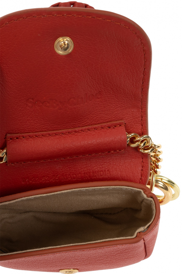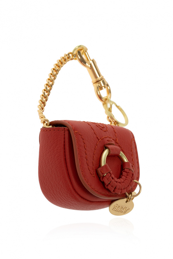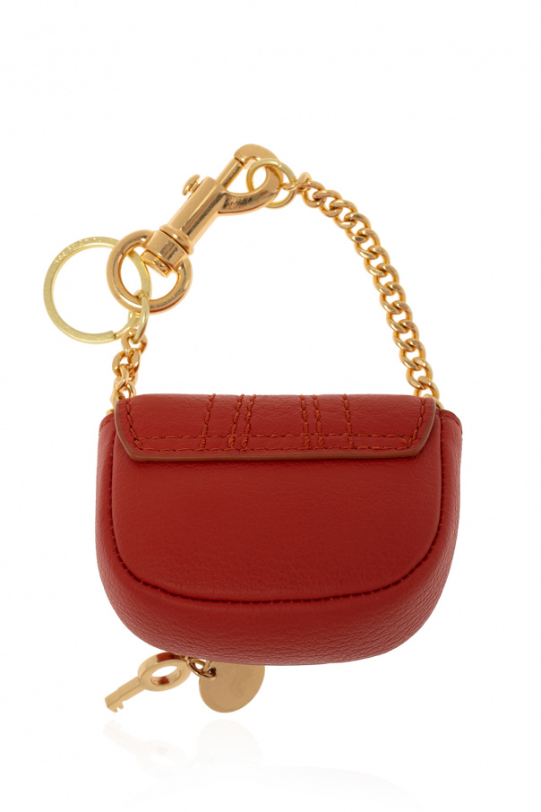 Red ‘Hana’ key holder from See By Chloé. Crafted from leather, this design features a snap fastening, distinctive seams, a leather-covered ring with logo charms, a short chain strap with a keyring and a lobster clasp, and one internal compartment.