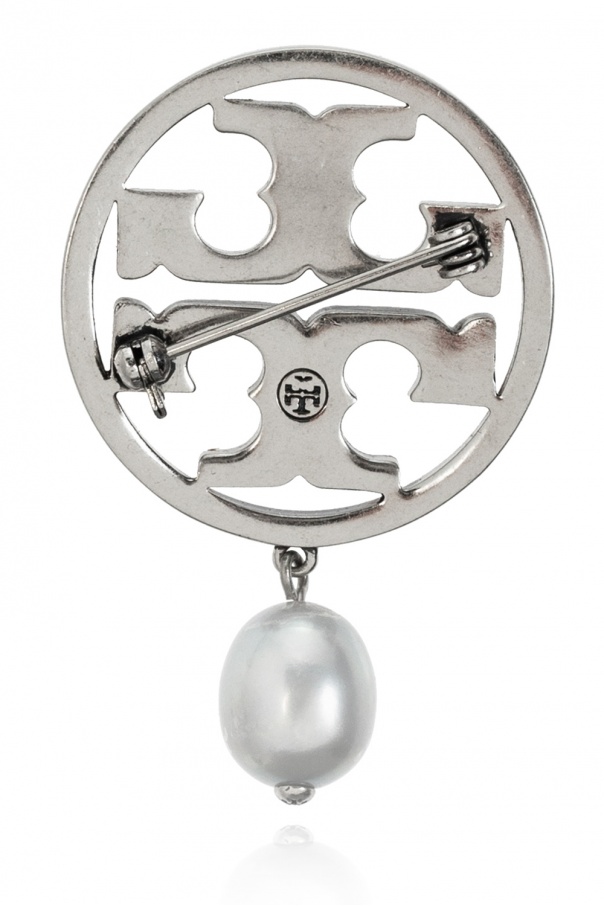 Brass brooch from Tory Burch. This piece comes embellished with white Swarovski crystals.