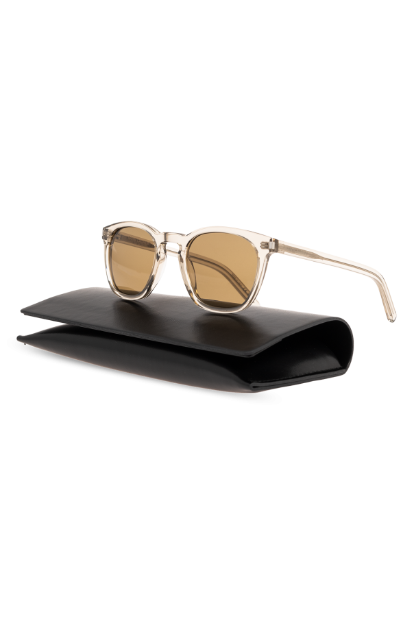 Beige ‘SL 28’ transparent sunglasses from Saint Laurent. Crafted with a rounded silhouette, this model showcases the brand\'s logo on the temples, silver-tone metal hardware and brown lenses with 100% UVA/UVB protection. Case included.