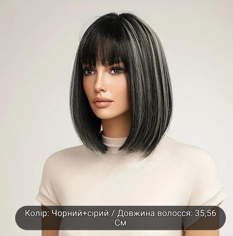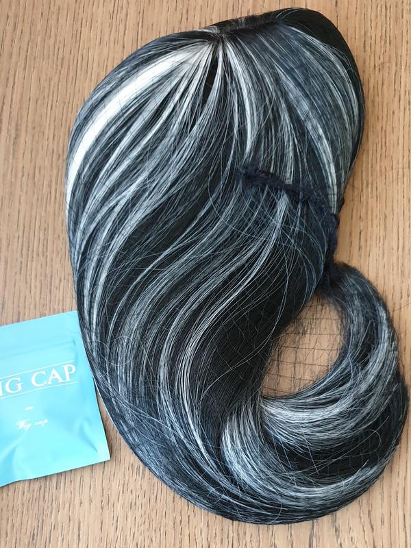 Парик из синтетических волос имеет естественный вид, модного цвета, черный с белым, 35 си, прямые волосы, для повседневной носки и изменения образа.