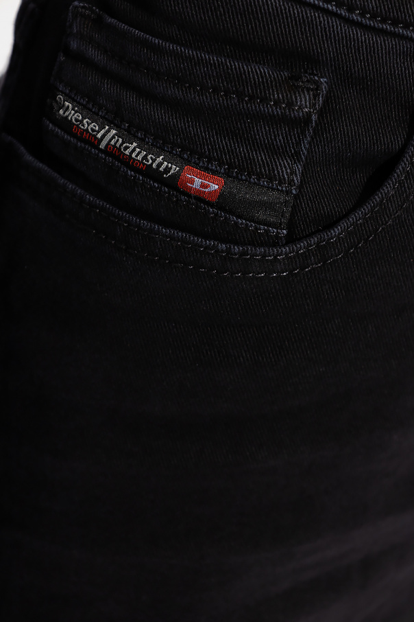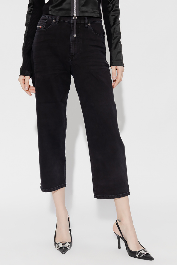 Black ‘2016 D-AIR’ jeans from Diesel. Fastened with a zip and button, this pair features a logo patch, embroidered monogram, three front pockets, two back pockets and cropped legs.