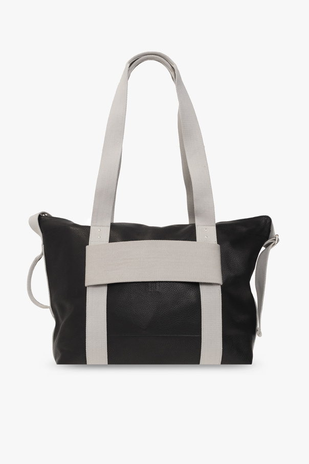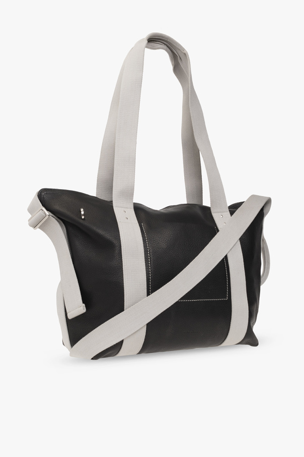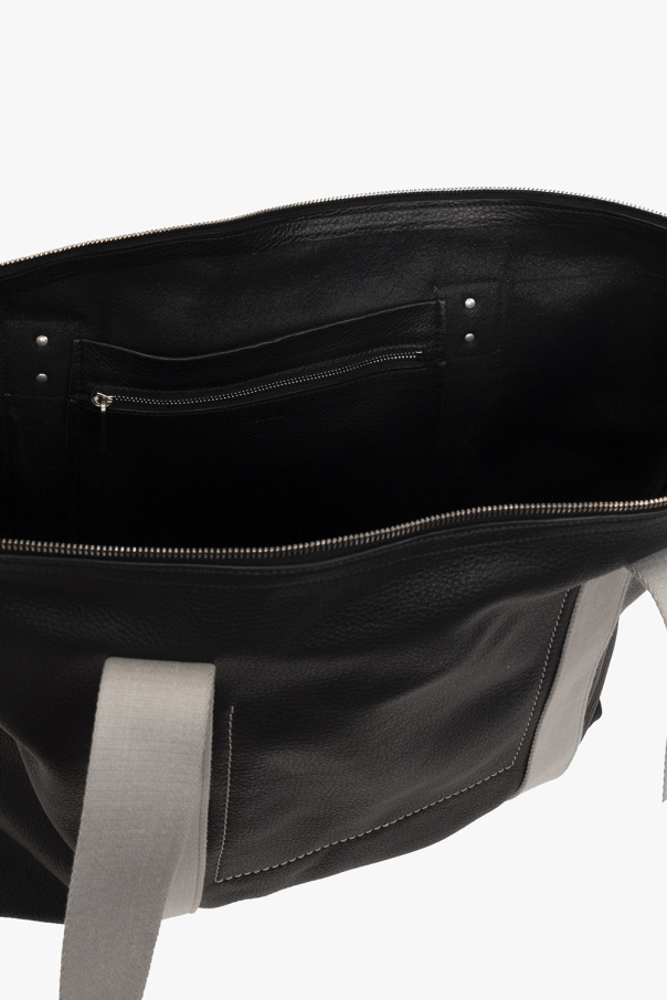 Black and grey shopper bag from Rick Owens. Made of leather, this model is complete with a zip fastening, stitching details, embossed logo, three half-round handles, shoulder strap, silver-tone metal hardware and one internal compartment with one slip pocket and one zip pocket.