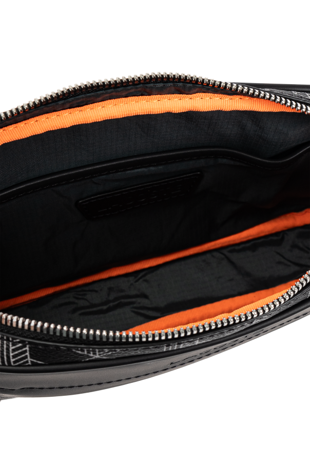 Introducing the Black Belt Bag from Lacoste\'s exclusive collection—an epitome of modern elegance and practicality. This compact bag, designed with a sleek rectangular shape and rounded corners, is perfect for wearing around the waist or across the shoulder. Adorned with a sophisticated geometric pattern of white lines forming three-dimensional cubes, the bag exudes a contemporary and refined appeal. Crafted from high-quality canvas with a matte finish, the front showcases an additional element of smooth, darker material, enhancing its luxurious texture. The front features the embossed Lacoste logo accompanied by the iconic black crocodile, a testament to the brand\'s heritage. The bag is equipped with a top zipper and an extra front pocket secured with a silver-finished zipper, adding a touch of elegance. The interior, lined with black material and accented with a striking orange detail, offers a main compartment and additional small pockets for organizing essentials. The adjustable strap, partially made from the same material as the bag and partially from black tape, ensures a comfortable fit for every individual. This belt bag, designed for men, seamlessly combines functionality with stylish design, making it an ideal accessory for daily use and a chic addition to any outfit. Why choose this product? High-quality canvas material with a matte finish Elegant geometric pattern with 3D cubes Embossed Lacoste logo and iconic crocodile emblem Secure silver-finished zippers Spacious interior with additional pockets Adjustable strap for versatile wear Perfect blend of functionality and style