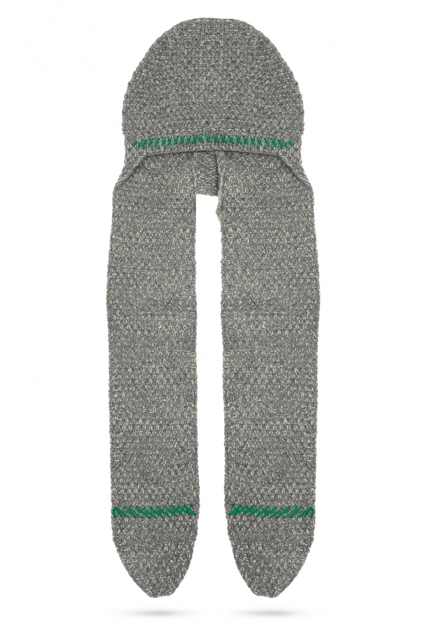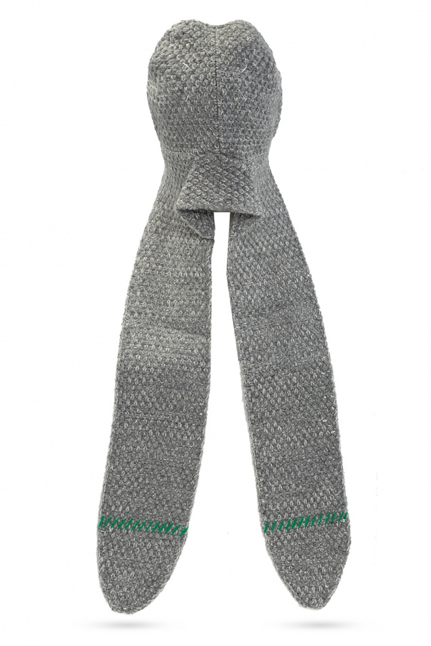 Grey hat from Maison Margiela. Knitted from a wool, cotton and linen blend, this item is enriched by green stitching details.