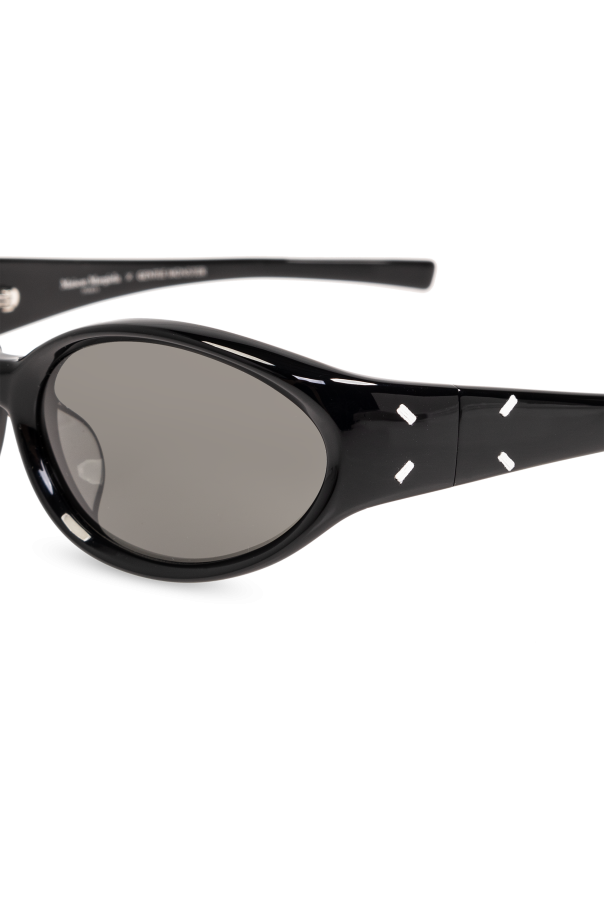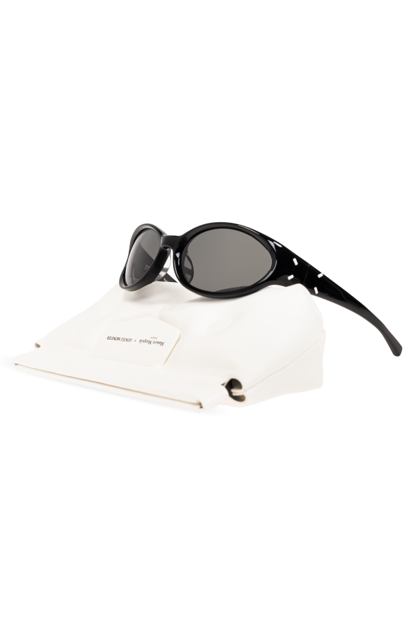 Introducing the epitome of sophistication and timeless style: the Maison Margiela x GENTLE MONSTER \'MM104\' sunglasses. Crafted for the discerning woman, this collaboration unites Maison Margiela\'s iconic aesthetic with GENTLE MONSTER\'s innovative design, resulting in a piece that transcends mere accessory to become a statement of elegance. The sunglasses boast an ovular shape that gently tapers towards the ends, a nod to retro aesthetics yet thoroughly modern in execution. Fabricated from premium synthetic material, they promise durability without compromising on lightness, ensuring comfort in wear. The deep black hue of the frames offers unparalleled versatility, making these sunglasses a sublime addition to any ensemble. Detailing includes subtle brand insignias, affirming the authenticity and prestigious lineage of the product. The lenses, matching the frames in color, offer 99.9% UV protection, safeguarding your vision with a blend of functionality and style. A distinctive touch is the signature white stitching on the temples, a hallmark of Maison Margiela\'s design philosophy. These sunglasses are presented on a stand, a white block embossed with the names of the collaborating brands, suggesting an exclusive collectible appeal beyond their practical use. The set includes a case, enhancing its allure for collectors or those seeking an extra touch of exclusivity. Why Purchase This Product? Exclusive collaboration between Maison Margiela and GENTLE MONSTER. Elegant design that blends retro charm with contemporary chic. Made from high-quality material for durability and comfort. Offers significant UV protection while elevating your style quotient. Unique detailing like the Maison Margiela white stitching and discreet logos. Comes with a collectible stand and case for enhanced exclusivity.