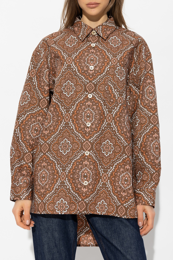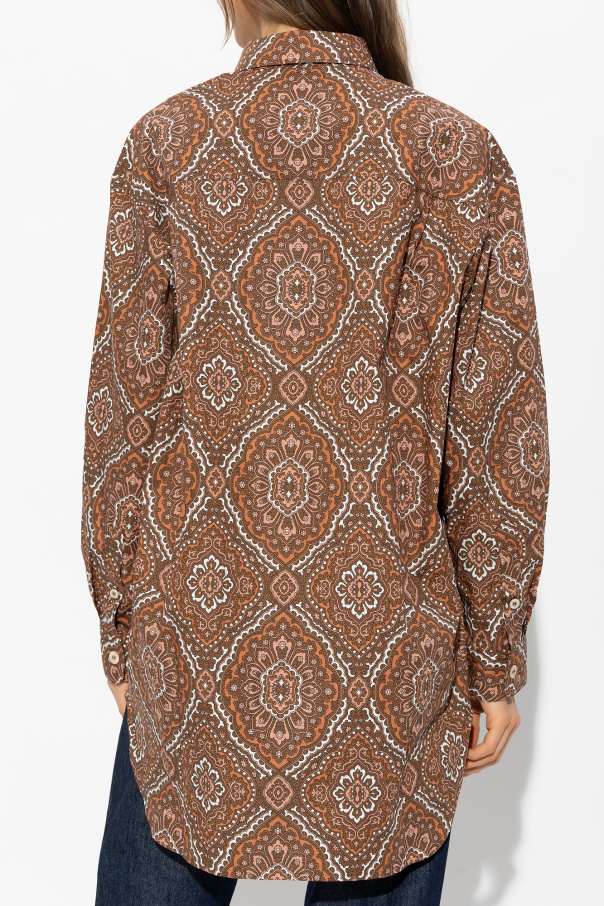 Brown and white ‘Harrison’ shirt from A.P.C. Made of organic cotton, this garment fastens with buttons and is decorated with a pattern.