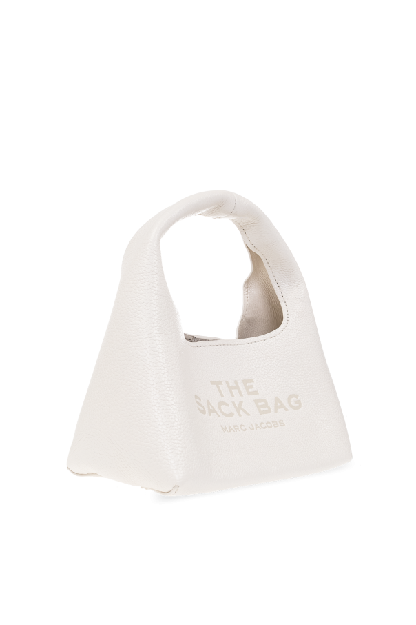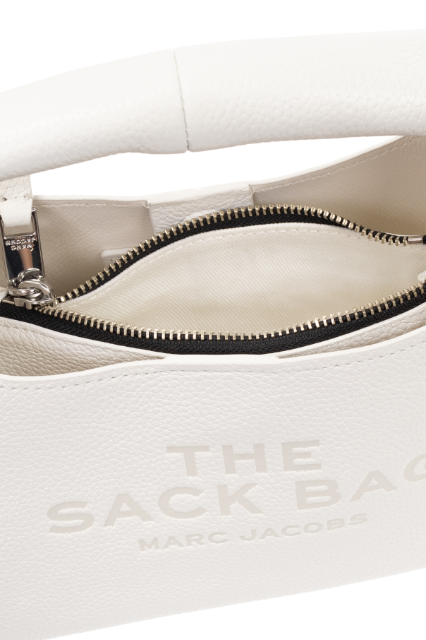 White ‘The Mini Sack’ handbag from Marc Jacobs. Made from grained leather, this design secures with a magnetic fastener and showcases an embossed logo and patch. It is complete with silver-tone metal hardware and one internal compartment with a zip pouch.
