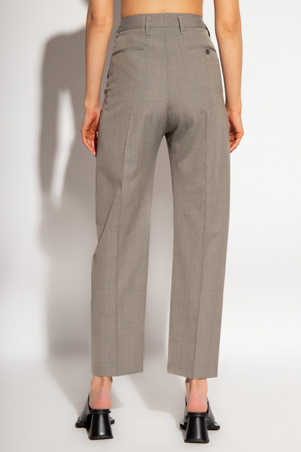 Grey pleat-front trousers from Lemaire. Falling with slightly tapered legs, this pair features a zip fly with a button and hook, two side seam pockets and two back button pockets.