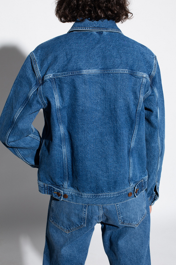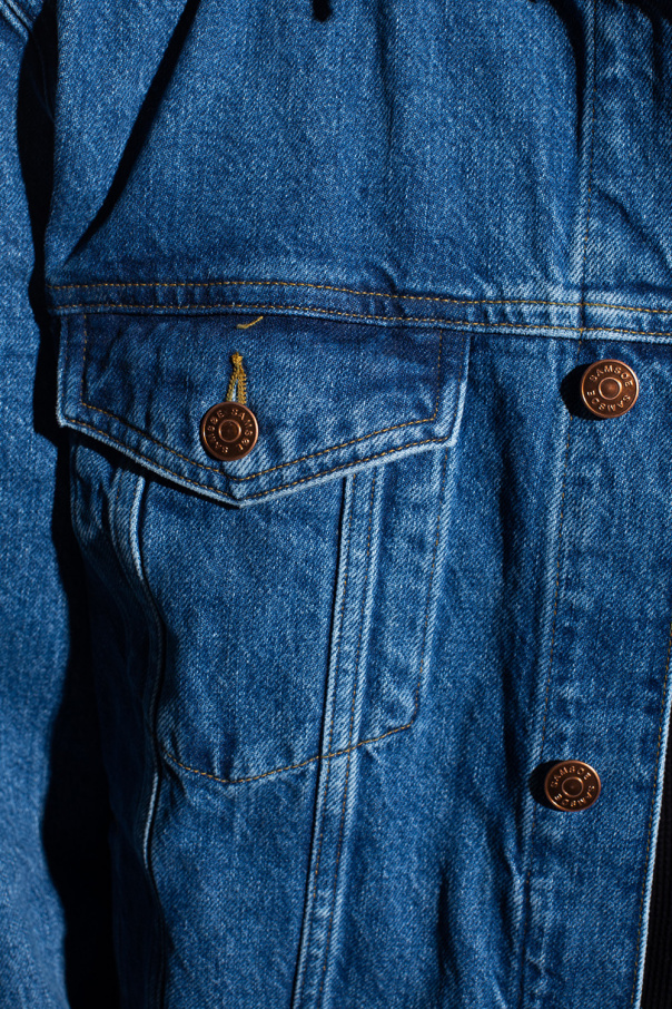 Navy blue denim jacket from Samsoe Samsoe. Crafted from organic cotton, this style fastens via buttons and features two welt pockets, two flapped pockets with buttons and long sleeves.