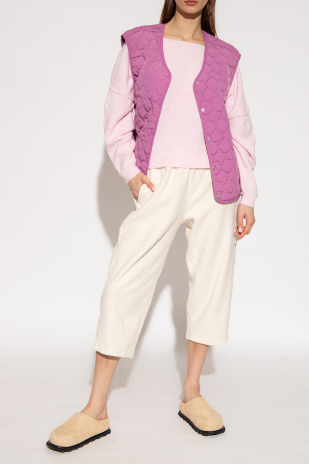 Purple quilted vest with snap fastenings and two slip pockets from American Vintage.