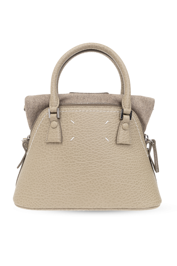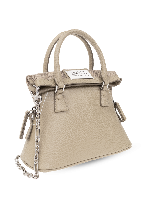 Beige ‘5AC Classique Micro’ shoulder bag from Maison Margiela. Made of leather, this model features a snap closure, patch, the brand’s signature pattern in white, two half-round handles, detachable and adjustable shoulder strap, silver-tone metal hardware and one internal compartment with one slip pocket.