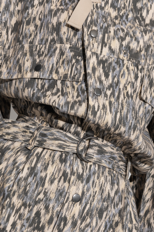 Cream ‘Kendra’ jumpsuit from Isabel Marant Étoile. Made of cotton, this garment features snap fastenings, adjustable neck and waist, multicolored pattern, loose-fitting silhouette inspired by work clothes, four front pockets, two back pockets, long sleeves with turn up cuffs and long, loose-fitting legs.