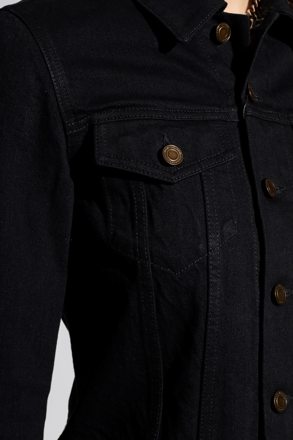Black denim jacket from Saint Laurent. Crafted from cotton with a regular fit, this style features button fastenings, two flapped pockets and long sleeves.