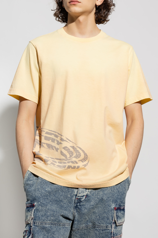 Orange ‘T-JUST-G5’ crewneck T-shirt from Diesel. Crafted from cotton, this style features short sleeves, an elasticated collar and a grey logo graphic.