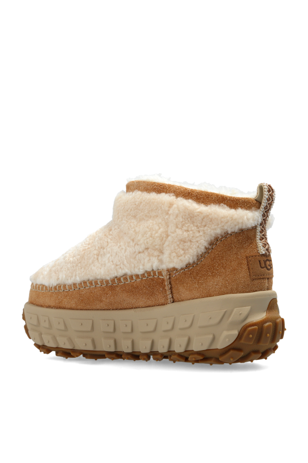 Introducing the W Venture Daze Ultra Mini snow boots by UGG, a paragon of luxury and functionality from our exclusive collection. These boots epitomize elegance with their low-profile design, descending just below the ankle. Crafted from sumptuous materials, the upper part imitates the plush feel of soft wool or fur in a creamy hue, while the lower portion is enveloped in rich brown suede. This sophisticated contrast in textures exudes a refined aesthetic, enhanced by the minimalist, unadorned design. Subtlety is key, as evidenced by the discreetly embossed logo on the side. The robust, anti-slip sole, featuring a distinctive square tread pattern, ensures superior traction on icy surfaces. Inside, a lining of soft, fur-like material promises unparalleled comfort and warmth, making these boots an ideal companion for winter escapades. Why Choose This Product? Elegant Design: A chic blend of creamy wool-like material and brown suede. Exceptional Comfort: Luxurious, fur-lined interior for warmth and coziness. Durable Construction: Anti-slip, thick sole for reliable grip on snow and ice. Versatile Style: Perfect for casual, daily winter outfits. Iconic Brand: Crafted by UGG, a name synonymous with quality and heritage.
