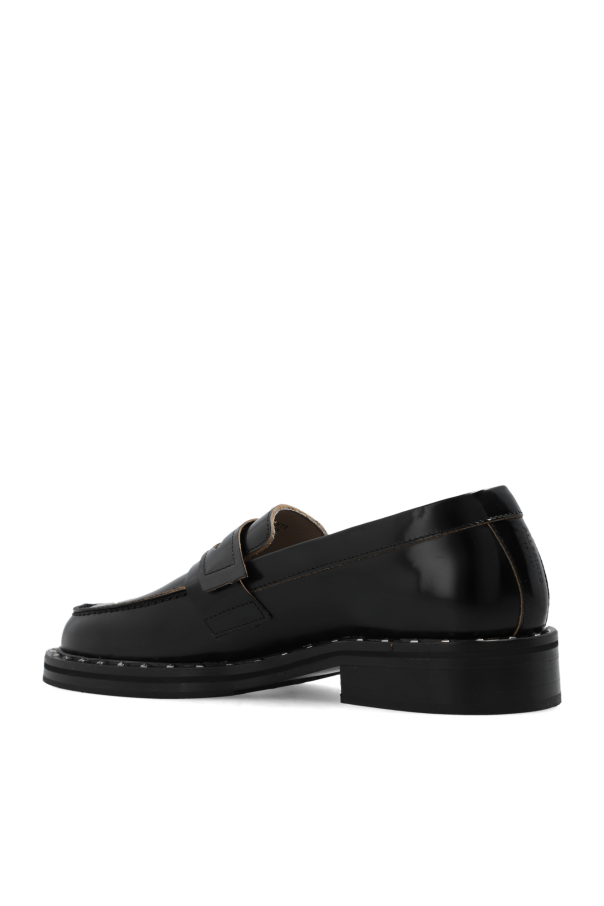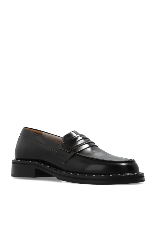 Black ‘Dalias’ loafers from AllSaints. Made of leather, this pair rests on a leather and rubber sole in black and is enriched by silver-tone studs.