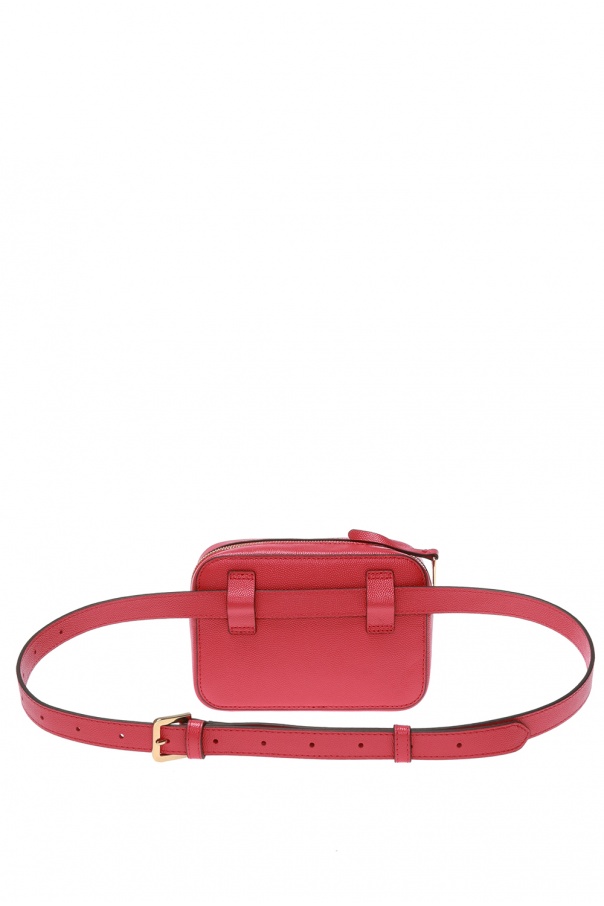 Red ‘Babylon’ belt bag from Furla. Made of textured leather. Zip fastening. Gold-tone applique on the front. Adjustable belt. One compartment and a slip pocket inside.