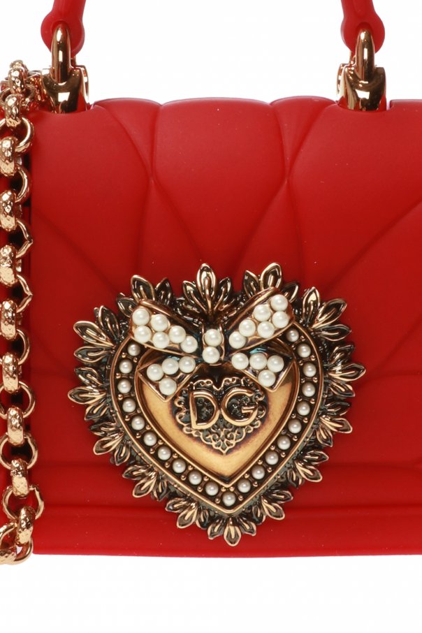 Red AirPods case from Dolce & Gabbana. Decorated with a logo applique in antique gold-tone. One compartment inside. Detachable chain strap.