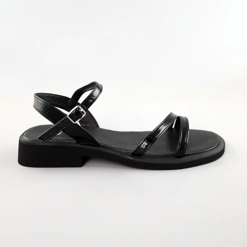 Відкрийте для себе безмежний комфорт та елегантність з нашими жіночими сандаліями, виготовленими з високоякісної натуральної лакованої шкіри у чорному кольорі. Ці сандалі - втілення легкості та стилю, ідеальний вибір для сучасної жінки, яка цінує комфорт та моду.
