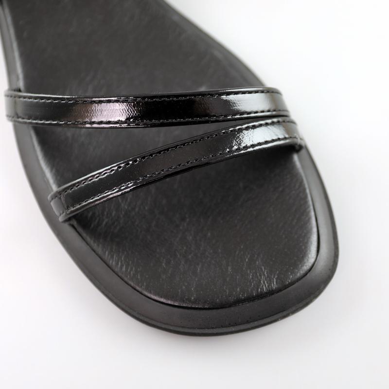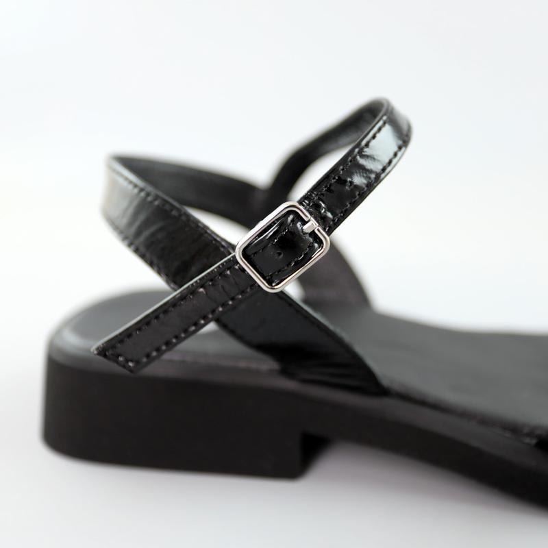 Наші сандалії виготовлені з високоякісної натуральної лакованої шкіри, що надає їм розкішний вигляд та максимальний комфорт під час носіння. Чорний колір надає їм елегантного вигляду, що легко поєднується з будь-яким образом.