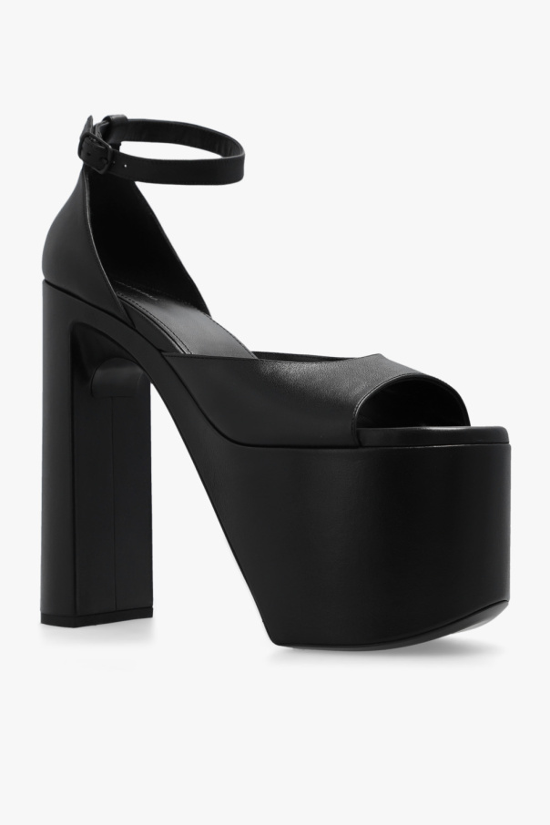 Black ‘Camden’ platform pumps from Balenciaga. Made of calf leather, this model sits on a black leather sole and features an adjustable strap fastening with a buckle and cut-out detailing on the front.
