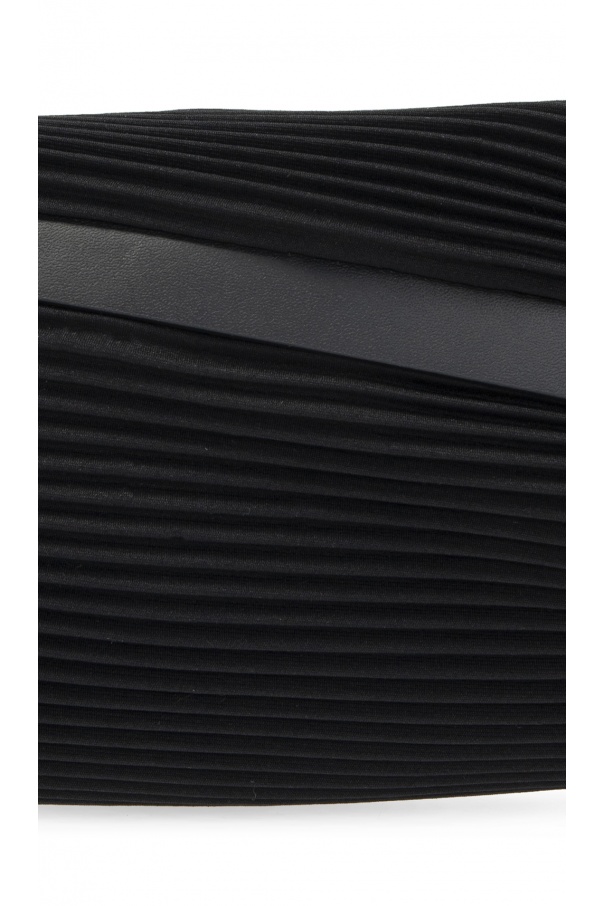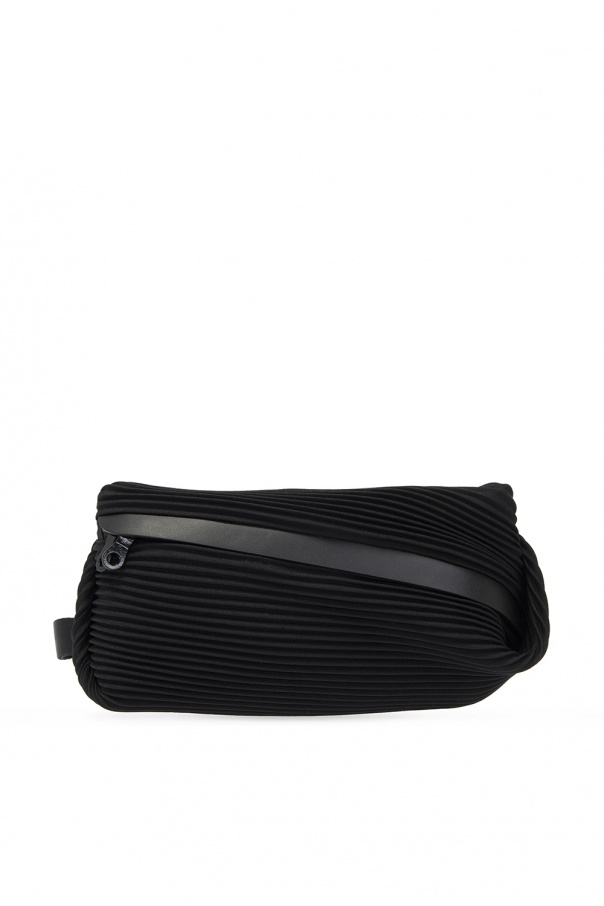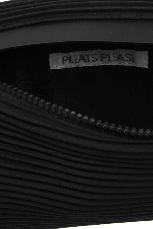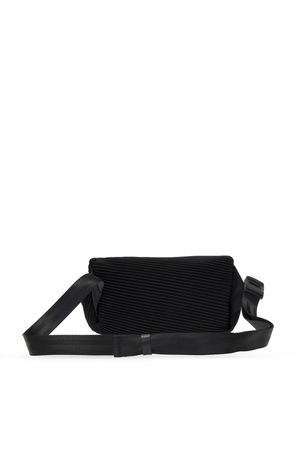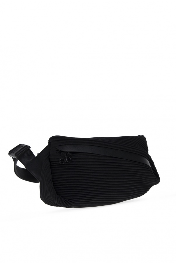 Black pleated belt bag from Issey Miyake Pleats Please. Fastened with a two-way zip, this item is complete with an adjustable belt, black metal hardware and one internal compartment with one slip pocket.