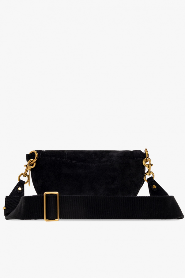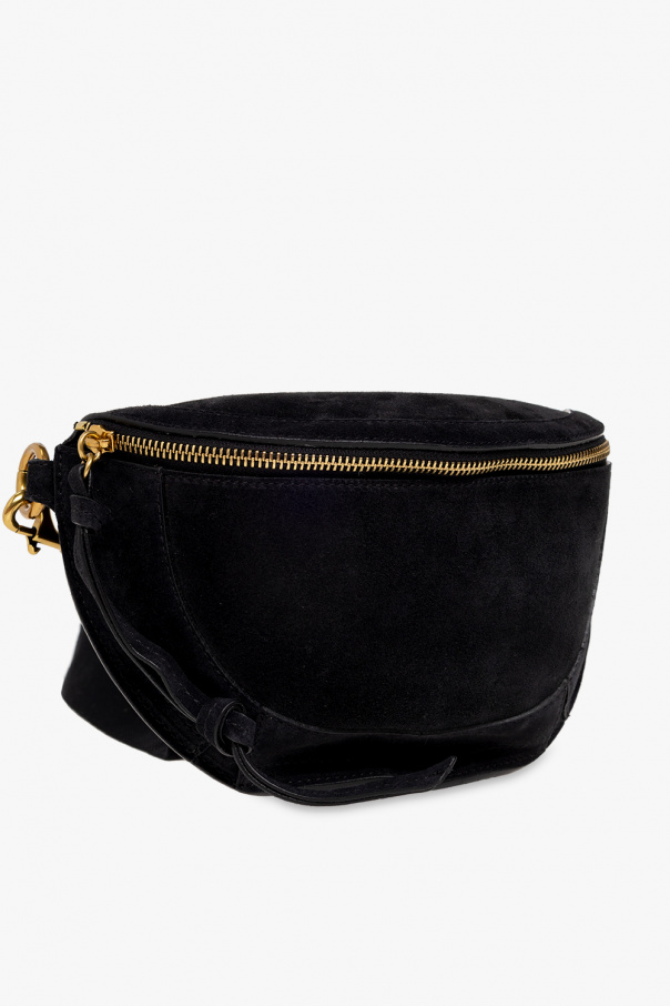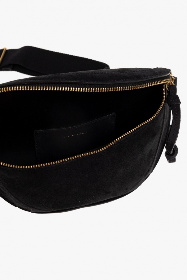 Black ‘Skano’ belt bag from Isabel Marant. Crafted from suede, this design secures with a zipper and features a back slip pocket, a detachable and adjustable strap, gold-tone metal hardware with an embossed logo and one internal compartment with a card slot.