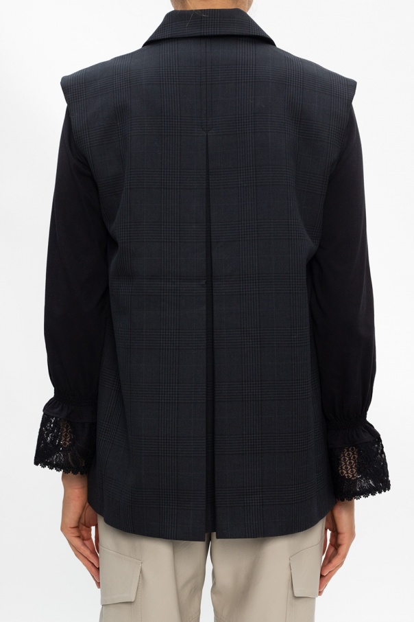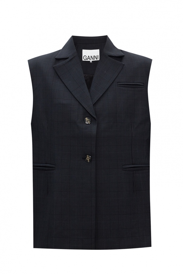 Navy and black vest with notch lapels from Ganni. Fastened with buttons, it is complete with three front slip pockets.