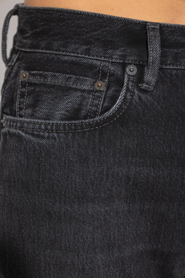 Black jeans from Acne Studios. Made of cotton, this straight leg pair features button fastenings, a black logo patch at the back and five slip pockets.
