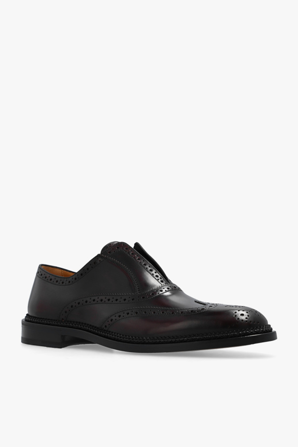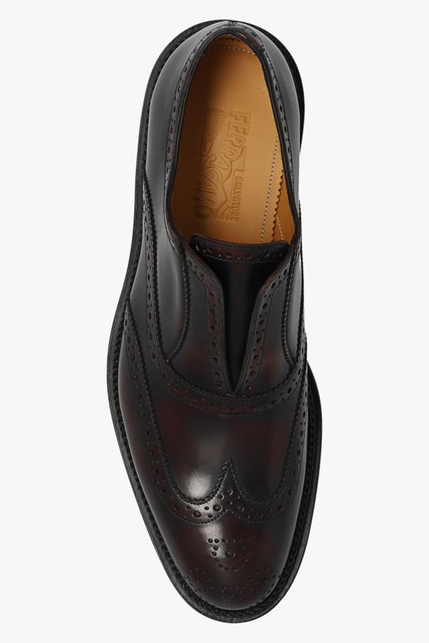 Dark maroon ‘Gaudino’ shoes from FERRAGAMO. Made of leather, this pair features cut-outs and brown leather sole.