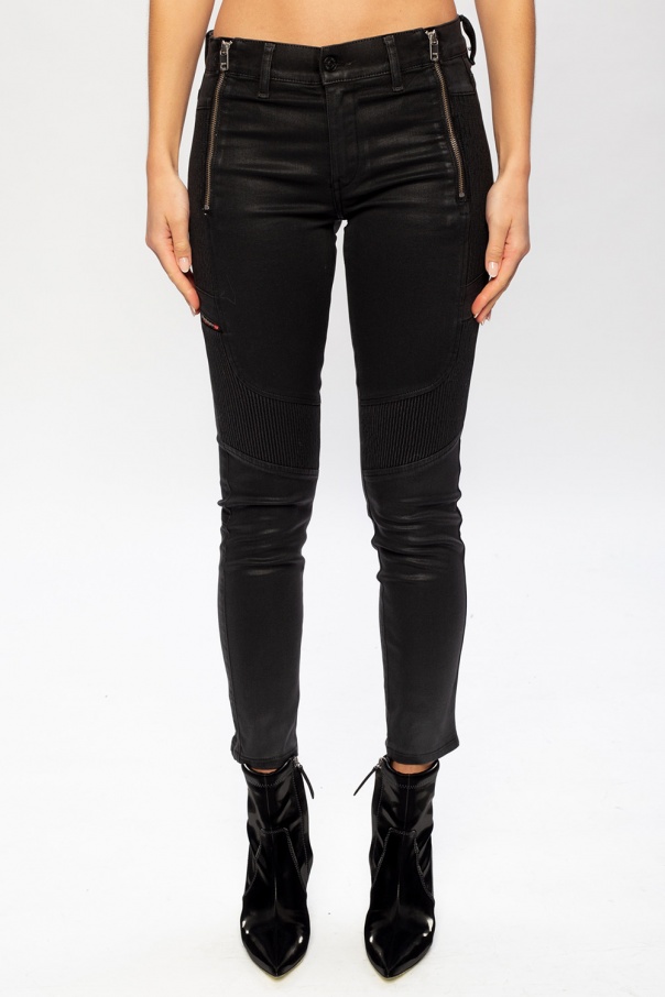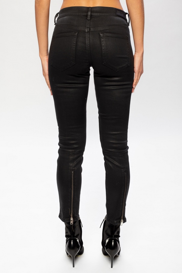 Black ‘D-Slandy’ jeans from Diesel. Fastened with a zip and button, this item features side zips, two slip pockets and zip detail at the cuffs.
