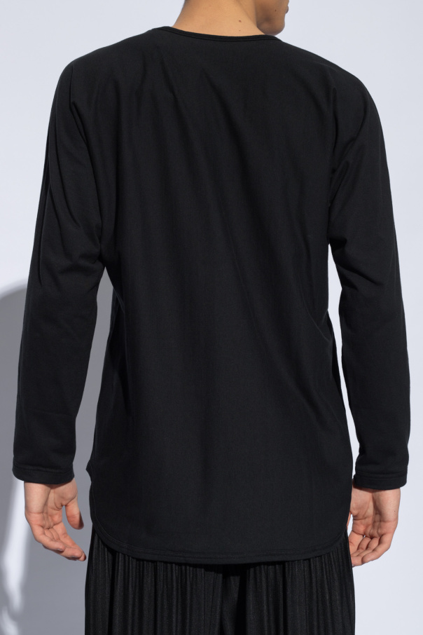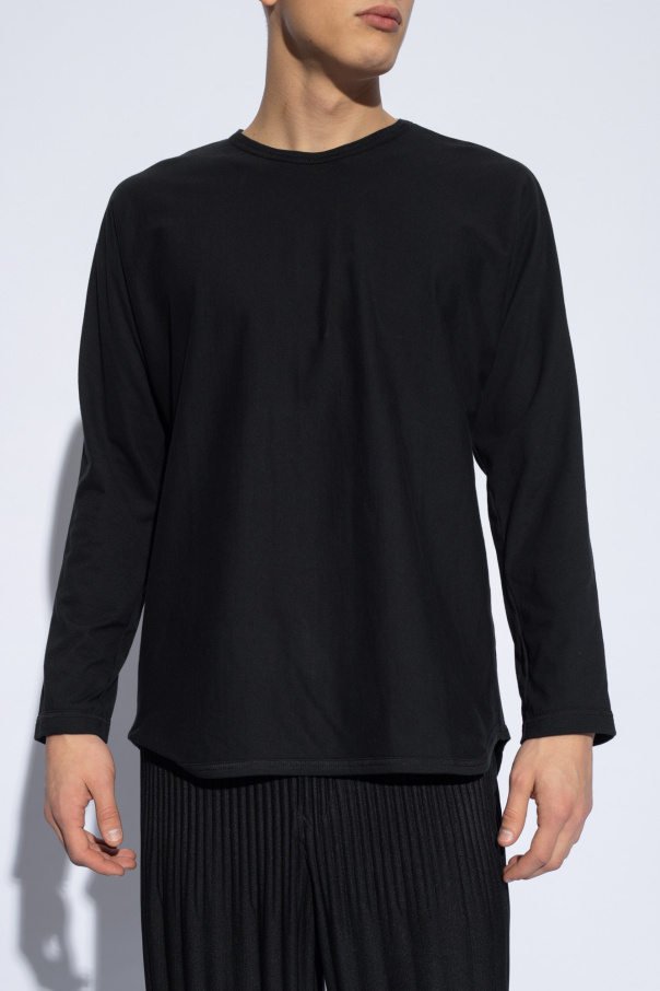 Black T-shirt from Issey Miyake Homme Plisse. Made of cotton, this oversize design features a stand collar and long sleeves.