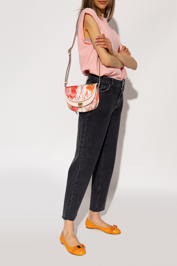 Orange ‘Varina’ ballet flats from Salvatore Ferragamo. Crafted from smooth calf leather, this model sits on a beige leather sole and showcases a logo-engraved bow application.